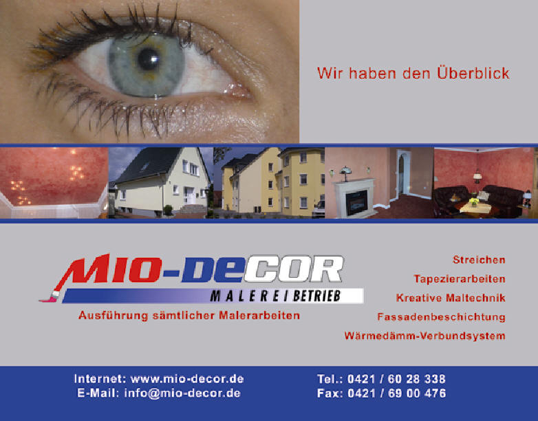 Wer das Besondere sucht, braucht einen Partner mit Ideen - Mio-Decor. Vertraut mit traditioneller Handwerkskunst, versiert in allen Techniken der kreativen Wandgestaltung, offen für Trends und Ihre individuellen Wünsche.
